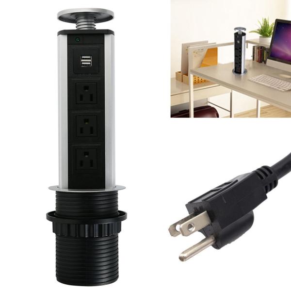 3. 3 plugs & 2 USB make it available for the extra power socket: This Pulling Pop Up USB Outlet has 3 plug sockets and 2 x usb charger points. It enables you to connect up to three mains powered units side by side and you can add extra power sockets without the hassle. Two USB ports have been integrated to charge the latest USB devices'''